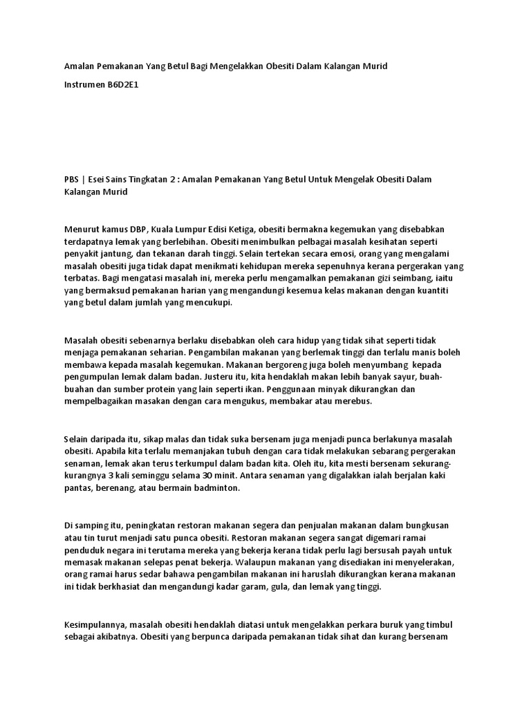 Contoh Karangan Punca Punca Obesiti Dalam Kalangan Remaja Peytondsx