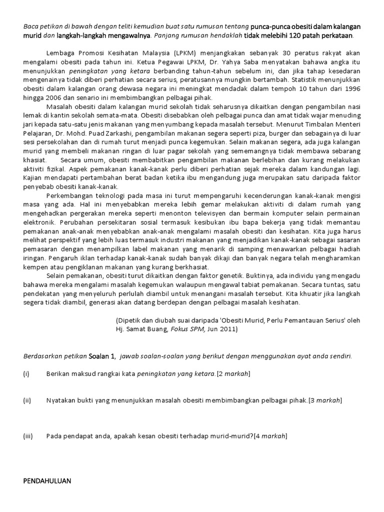 Contoh Karangan Punca Obesiti Pdf